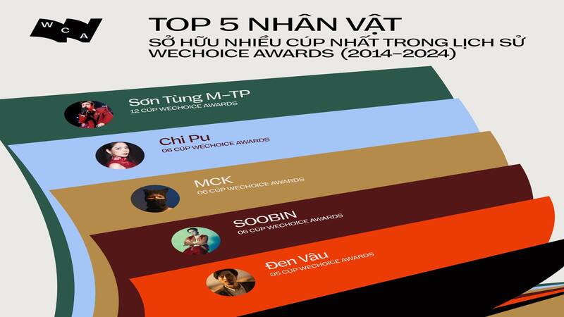 5 nghệ sĩ sở hữu nhiều cúp WeChoice Awards nhất: Toàn những "idol quốc dân" trong lòng giới trẻ