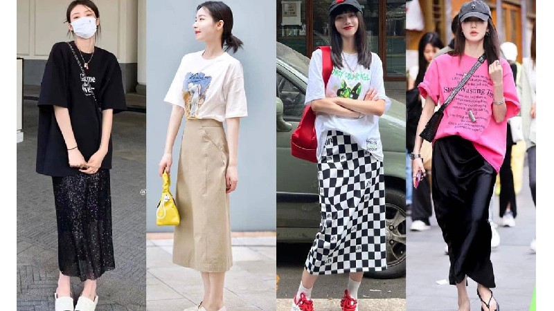 Có một cách mặc phổ biến trong mùa hè được gọi là "áo phông + váy dài", những người sành điệu rất thích mặc